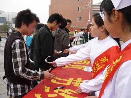 3月2日上午10点,护理学系2008级教学(2)班的同学们在学校食堂前开展了一次以“节约用水,从我做起”为主题的志愿服务和宣传活动。同学们主动向过往的人群介绍水资源的宝贵性,并积极发放他们精心制作的节水警示标语,希望以此能提高大学生的节约意识和节水观念,从自身做起,共同构建节约型校园。