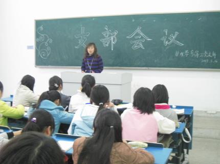刘雪飞老师主持会议 会上,刘雪飞同志首先宣读了护理学系第三学生党支部成立的文件,并提出了本学期支部的工作计划和近期的工作安排。随后,党支部组织委员杨亚宁带领大家一起学习了《省委书记王金山同志在全省组织工作会议上的讲话》、《省委副书记王方明同志在全省组织工作会议上的讲话》、《保持良好心态 优化政治生态――省委副书记王方明同志在省委党校2008年秋季学期开学典礼上的讲话》。支部决定在学习《毛泽东 邓小平 江泽民论科学发展观》、《科学发展观重要论述摘编》的基础上,于四月份在全体成员之间展开一次“实践科学发展观”的讨论。 最后,刘雪飞强调要充分发挥党员在现实生活中的模范带头作用,进一步加强在大学生中发展党员工作,创新性开展支部活动。相信充满活力的第三党支部在全体成员的共同努力下,将更加生机盎然。 (护理学系 席海侠/文 诸元婧/摄 宣传部 任苔蓉/审) |
