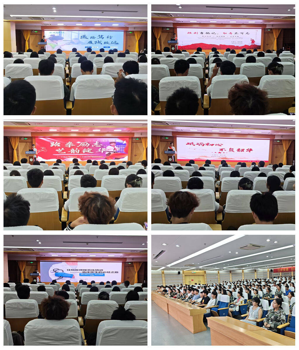 本次宣讲特邀五位覆盖多领域的优秀学生代表,以“成长亲历者”的视角送上“青春指南”。代忠意同学以九三阅兵参训经历为切入点,从退役大学生士兵的独特视角,号召同学们勿忘国耻、自立自强,将个人学识与强国建设需求紧密结合,在医学领域践行使命;王雨桐同学以挑战杯、各类创新大赛等 A、B 类赛事的国家级、省级奖项为实践注脚,分享平衡科研创新与志愿服务的方法,用“智慧突破创新、爱心传递温暖” 诠释新时代青年的多元担当;高原同学带着安徽省品势锦标赛、大学生跆拳道邀请赛“双冠军”的荣誉,围绕“坚韧与突破”主题,结合赛场拼搏故事解读体育精神内核,表示不仅是奖牌荣耀,更是直面挑战、永不言弃的勇气;聂文涛同学以连续两年国家奖学金获得者、三好学生标兵的身份,系统拆解临床医学专业的学习逻辑与核心方法,为新生绘制了从基础积累到能力进阶的“学业规划图谱”;2025届毕业生龙雨同学聚焦“从校园到临床”的衔接痛点,结合规培经历详解理论转化为实践的路径与技巧,既让新生直观认知医学职业发展脉络,更坚定了“学好专业知识、服务临床患者”的初心。
